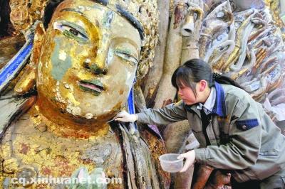 保護(hù)工程石質(zhì)修復(fù)組組長(zhǎng)、大足石刻研究院文物保護(hù)工程中心副主任陳卉麗說,整個(gè)修復(fù)工作嚴(yán)格遵循現(xiàn)代保護(hù)原則,依據(jù)千手觀音造像歷史雕鑿工藝痕跡,采用傳統(tǒng)技藝與多種現(xiàn)代高科技手段進(jìn)行修復(fù),最大限度保存了千手觀音造像的歷史信息,并使這些歷史信息處于安全穩(wěn)定的狀態(tài)。