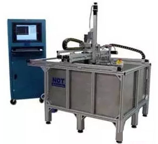 水浸超聲C掃描技術具有很多優點,但是對于大型的復合材料構件的無損檢測就比較不方便,因此就有了噴水超聲C掃描技術的發展。目前噴水超聲C掃描技術已普遍應用于飛機大型復合材料構件的快速自動檢測,可有效檢測出飛機復合材料構件中的分層、孔隙、脫粘、夾雜等各類缺陷,具有適用范圍廣、準確度高、檢測效率高等特點。國外早已研制出標準的工業型噴水超聲C掃描系統,并廣泛用于飛機復合材料構件的無損檢測。