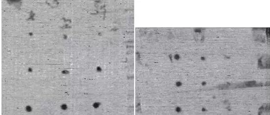 對比下圖(a)、(b)得出,碳纖維復合材料沖擊試樣的激光超聲C掃描圖與水浸超聲C掃描圖在沖擊分層的形狀、位置和尺寸表征方面具有一致性。然而,由于復合材料試樣沖擊區域表面狀態變化和沖擊分層的不規則形式對激光超聲和水浸超聲檢測參量的影響不同,這會導致兩種方法在沖擊分層的定量方面存在差異。
