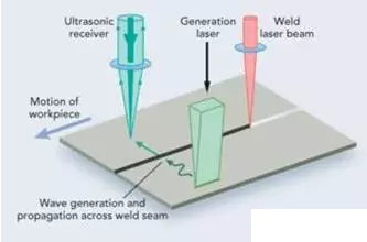 激光超聲是一種非接觸、高精度、無損傷的新型超聲檢測技術。它利用激光脈沖在被檢測工件中激發超聲波,并用激光束探測超聲波的傳播,從而獲取工件信息,比如工件厚度、內部及表面缺陷,材料參數等等。該技術接合了超聲檢測的高精度和光學檢測非接觸的優點,具有高靈敏度(亞納米級),高檢測帶寬(GHz)的優點。