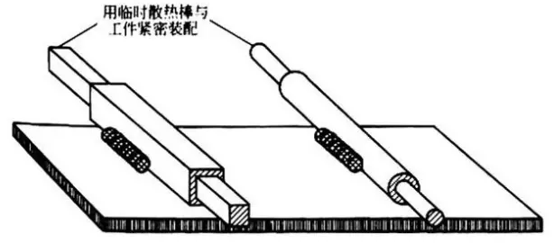 ③ 另一種方法是采用一個帶孔的金屬板條,將孔對準需要焊接的部位,并放置散熱墊圈,然后進行塞焊。